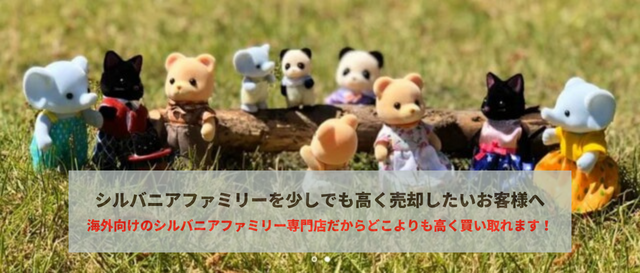 当店は、海外向けのシルバニアファミリー専門ネットショップです。 シルバニアファミリーのコレクターとしてギネスブックに登録されている英国のJaccさんはじめ、世界中のコレクターが顧客です。日本よりも価格相場が高い海外で販売しておりますので、買取額はどこにも負けません。 またコシルバニア愛が非常に強いコレクターさんが次の持ち主になる為、売却された商品は大切に扱っていただけます。