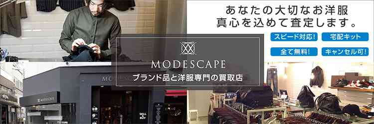 MODESCAPEは、ブランド品のお洋服・バッグ・シューズ等を取り扱うブランド古着のリユースショップです。ラグジュアリーブランドの洋服の他、デザイナーズやストリート系ブランドのお取り扱いでも定評がございます。オンラインストアの他に、渋谷と新宿に実店舗がございます。近くにお店が無くても自宅で完結する宅配買取サービスを全国に向け対応しています。宅配買取は梱包材・送料も当社負担で全て無料でご利用いただけます。また、東京都内であれば出張買取にも対応しています。ご自宅で査定・お支払いする【自宅で査定する出張買取】と、ご自宅にお品物を取りに伺って、当社査定センターで査定する【取りに来る出張買取】の2通りを用意しています。