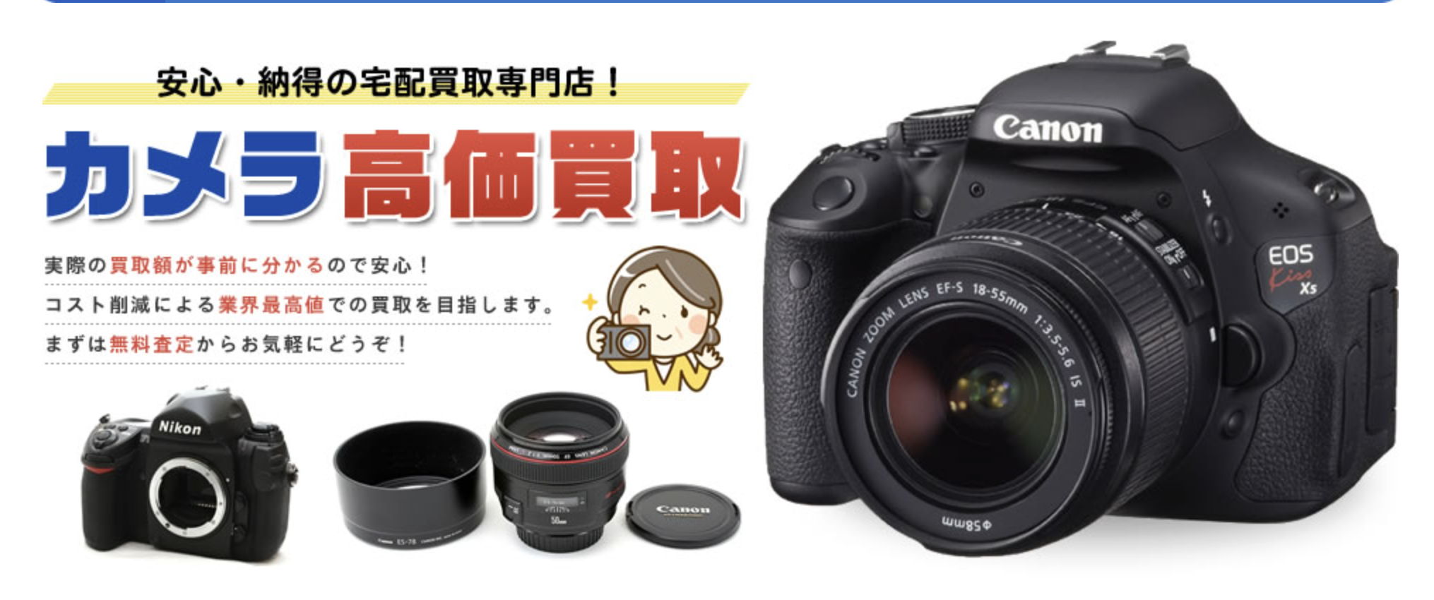 当店ではいわゆる「買取上限価格」という表現はせず、カメラ・レンズの状態をお聞きした上で、最初から実際とほぼ変わらない査定価格をお伝えいたします! 実際の買取金額がいくらになるのかが不明確では、安心してご利用頂けないと思いますし、商品を送った後の本査定での大幅な減額はお客様をガッカリさせてしまう、と思うからです。 最初の見積り段階では、パっとしないように感じられるかもしれませんが、他店の最終的な提示額よりも高い額での買取をさせていただきます!