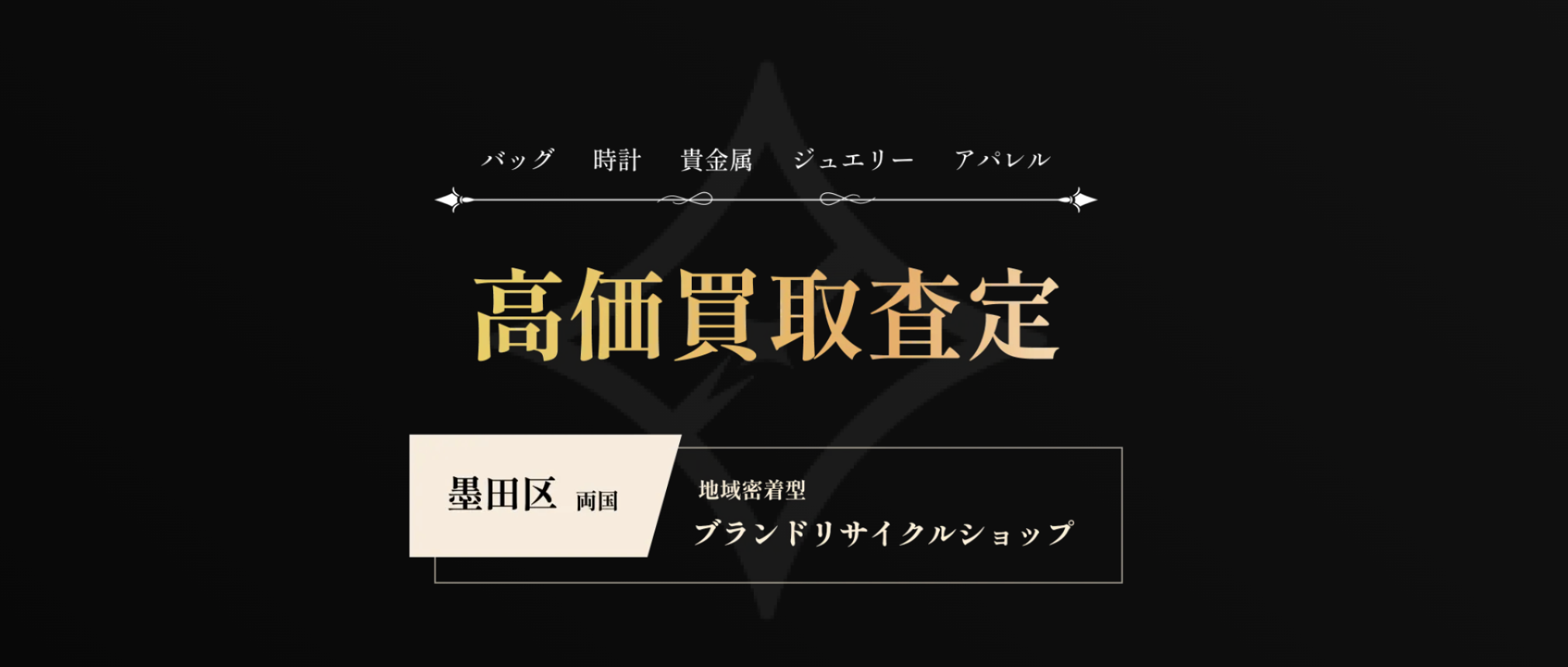 墨田区両国に店舗を構えているブランドリサイクルショップです。買取ジャンルはブランド品であればジャンル問わず可能です。親切丁寧な接客はもちろんのこと、大手に負けない強い販路と自社ECを駆使し、他店よりも1円でも高くお買取りさせていただきます。お査定方法は【店頭】【宅配】【出張】の3方法をご用意し、全てお客様に費用負担はございません。お任せいただきましたお品物は大切に次の方へお繋ぎさせていだきますので、まずはお気軽にお問い合わせくださいませ。