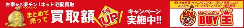 BUY王は業界トップクラスの高価買取・取扱商品数のネット宅配買取ショップです。豊富なキャンペーンも魅力でまとめ売りなら是非おまかせください。BUY王はここが強い!(1)書籍は1か月以内は定価50%以上買取額保証!(コミック等の一部商品を除く)。(2)1点1点の買取明細を提示。(3)その場で査定結果を確認出来る「スピード査定」をご用意!(ゲーム・DVD・CD・本はHP上でお客様ご自身にて事前見積もり可能!)。(4)最短翌日集荷。すぐにお荷物を引き取りに伺います。(5)豊富な取扱商品。「DVD/Blu-ray、カメラ、スマホ・タブレット、PC、デジタル家電、ゲーム、フィギュア、ホビー、楽器、美容機器、喫煙具、アイドルグッズ、カーナビ、釣り具、時計、電動工具、漫画全巻、本、CD、ベビー用品、電位治療器、アウトドアグッズ、ゴルフ用品、万年筆、ファッション(靴・スカーフ・ハンカチ等)」まとめてご依頼頂けます。