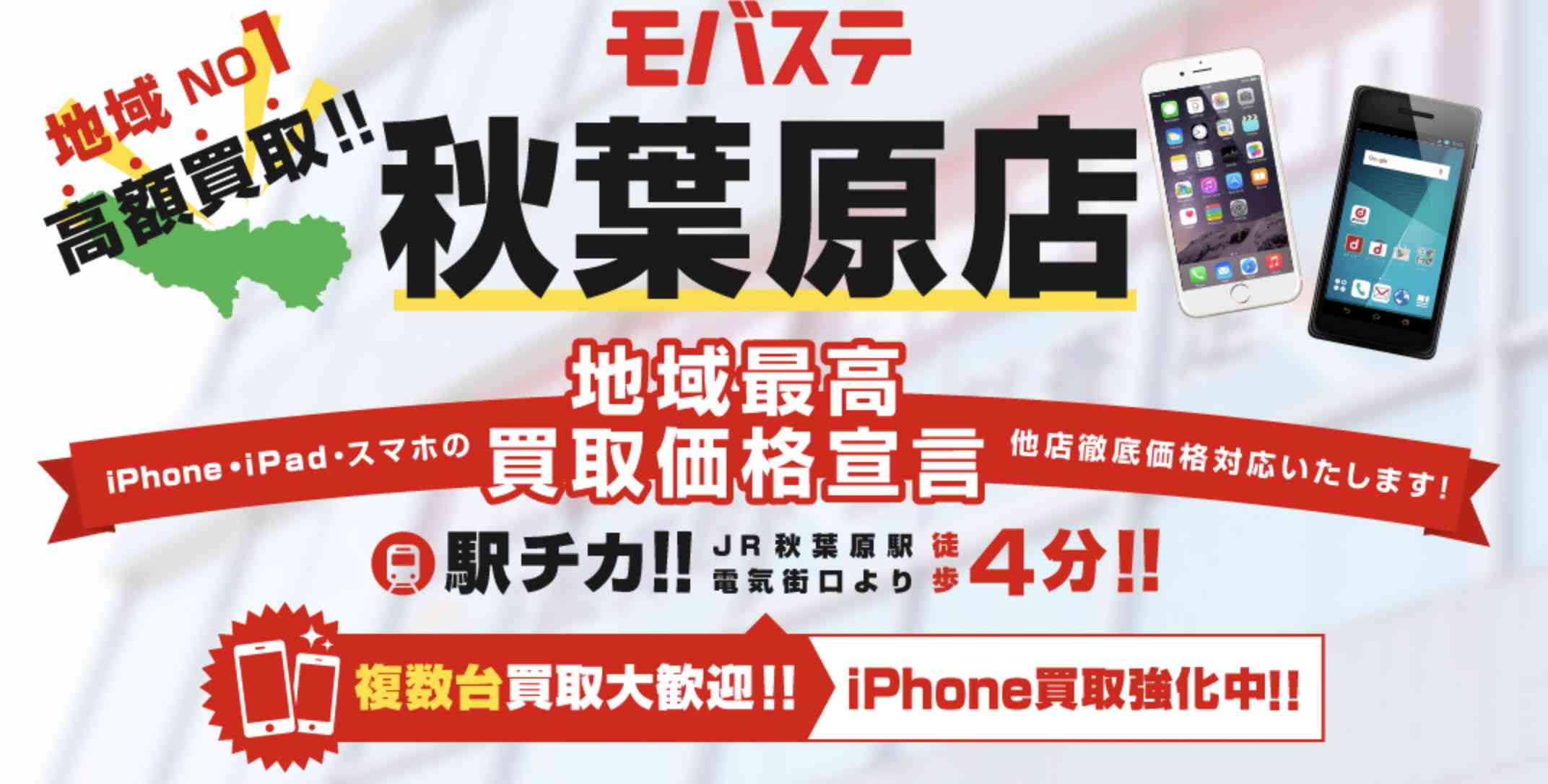 「モバステ秋葉原店」は地域最高買取価格宣言をするなどスマホの買取に自身がある店舗です。
