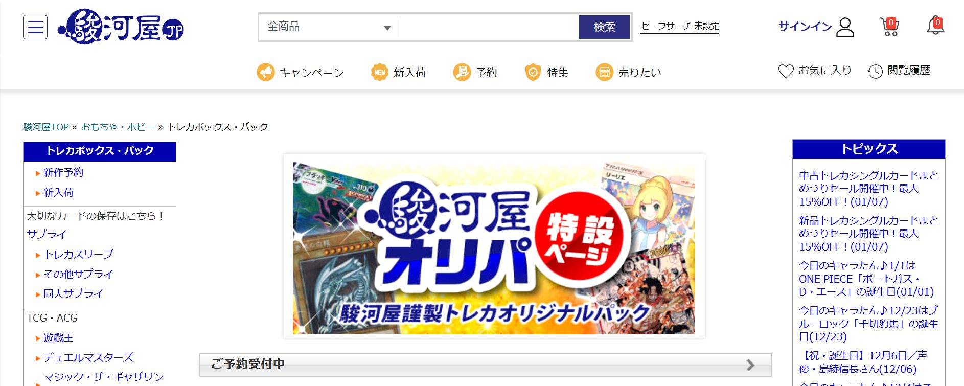駿河屋ではトレカと名前が付くもののほとんどが、買取の対象となっています。