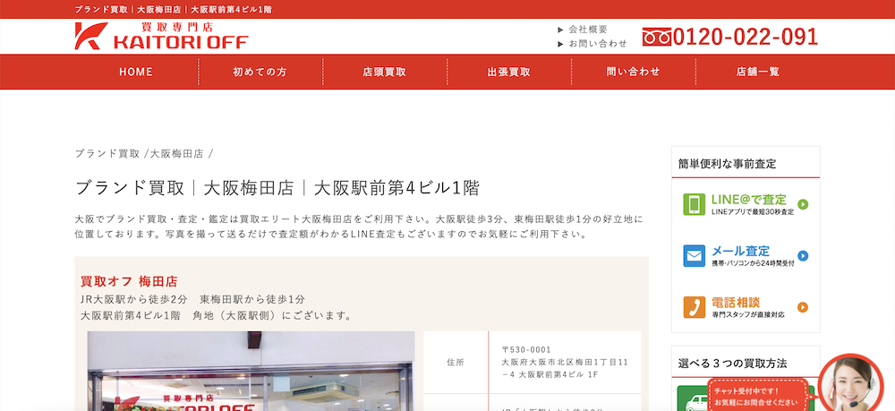 詳細へ | ★★★★☆4.8 | 2点以上の持ち込みがお得 | ○ | ○ | ○ | あり | 大阪府大阪市北区 | 全国 | なし | 10:00~21:00 | 時計、金・貴金属、バッグ、服など | 第301102004121号 |