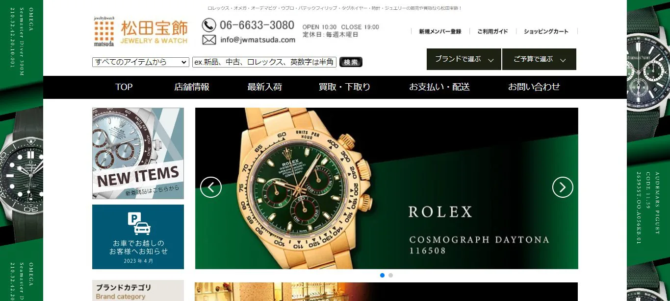 詳細へ | ★★★★☆4.7 | 使用感がある時計でもOK | 〇 | 〇 | 〇 | あり | 大阪府大阪市北区 | 関東、近畿 | 不定休 | 11:00~20:00 | ジュエリー、時計、バッグなど | 第541162007700号 |