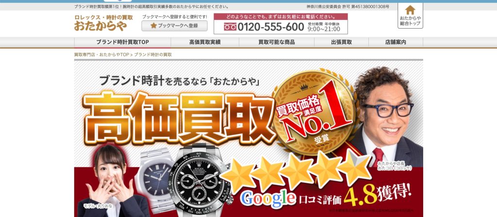 | ブランディア | 詳細へ | ★★★★☆4.7 | 売り時の時計ブランド・モデル公開 | ○ | – | ○ | あり | 東京、神奈川、愛知、大阪、広島、福岡など | – | 日曜、祝日(問い合わせ) | 11:00~18:00(問い合わせ) | 腕時計、バッグ、財布など | 第302170407755号 |