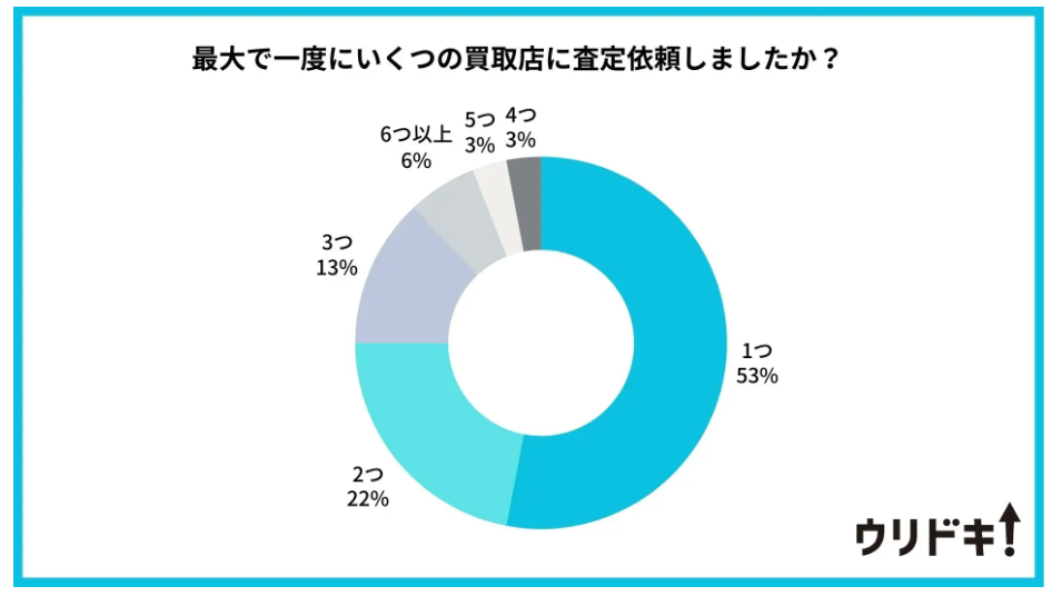 一社での査定のみで買取成立させている方が半数以上を占めていることが分かります。せめて数社、比較しなければ買取金額の交渉もしにくく、損をしてしまっている可能性も高いです。