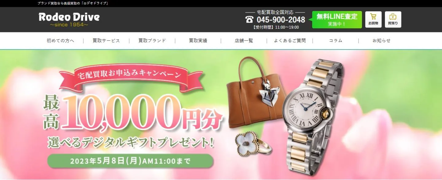 | ロデオドライブ | 詳細へ | ★★★★☆4.9 | 1945年創業の歴史ある買取店 | ○ | ○ | ○ | あり | 東京、神奈川 | 店舗近辺 | 年末年始 | 店舗による | 時計、バッグ、宝石、貴金属など | 第304360906009号 |