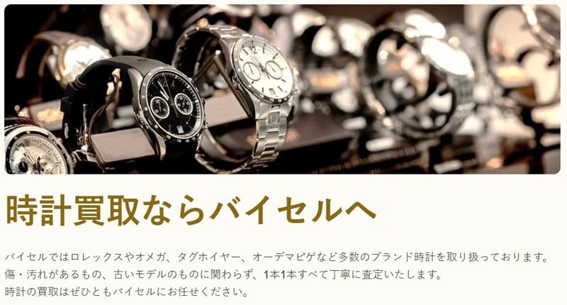 買取大吉ではロレックスやオメガなどの高級時計から、セイコーなどの国産メーカーの時計、ルイ・ヴィトンなどのブランド時計まで、幅広く買取を行なっています。公式サイトには、時計の買取実績が写真と値段付きで掲載されているため、参考にしてください。