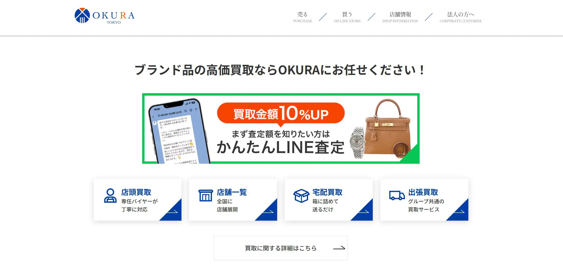 | OKURA(おお蔵) | 詳細へ | ★★★★★5.0 | 豊富な買取方法から選択可能 | ○ | ○ | ○ | あり | 関東、東海、関西、九州 | 全国 | 店舗による | 店舗による | ブランド品、時計、金・貴金属など | 第305491906371号 |