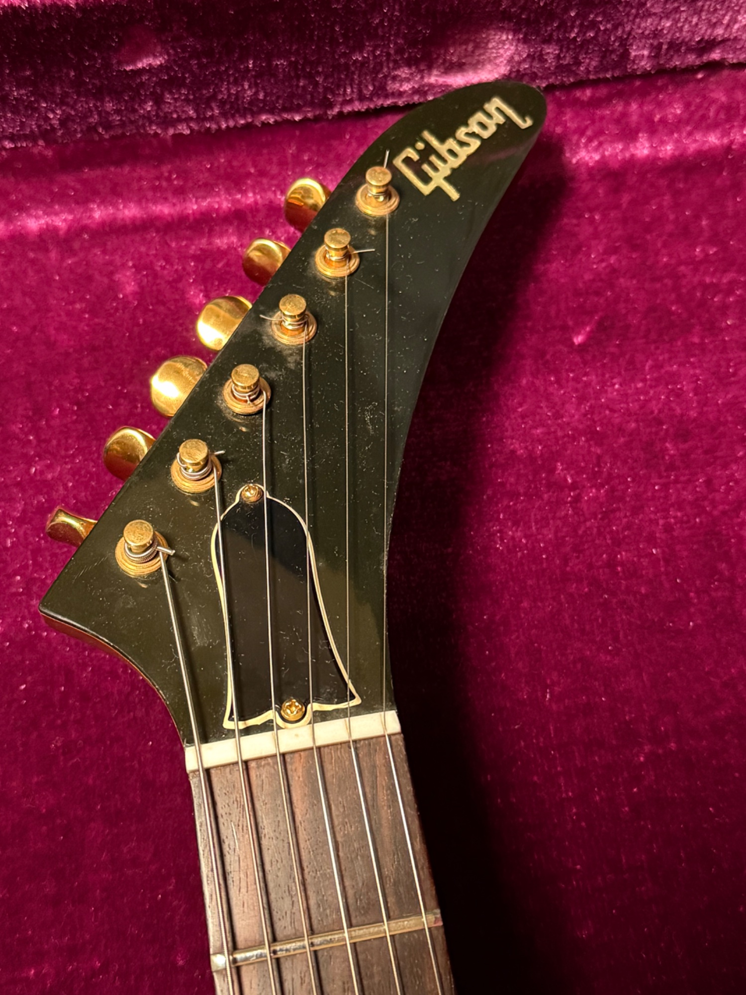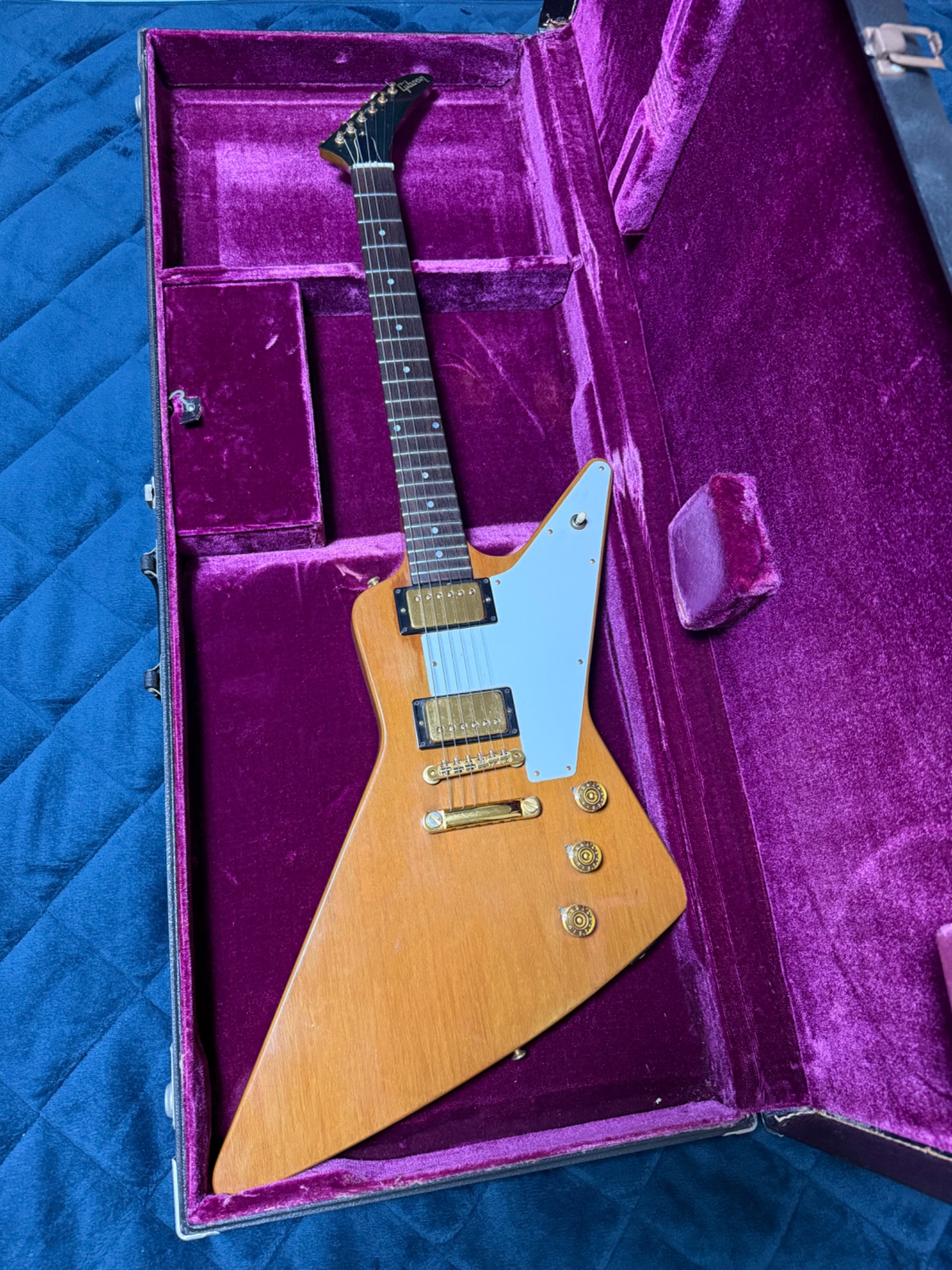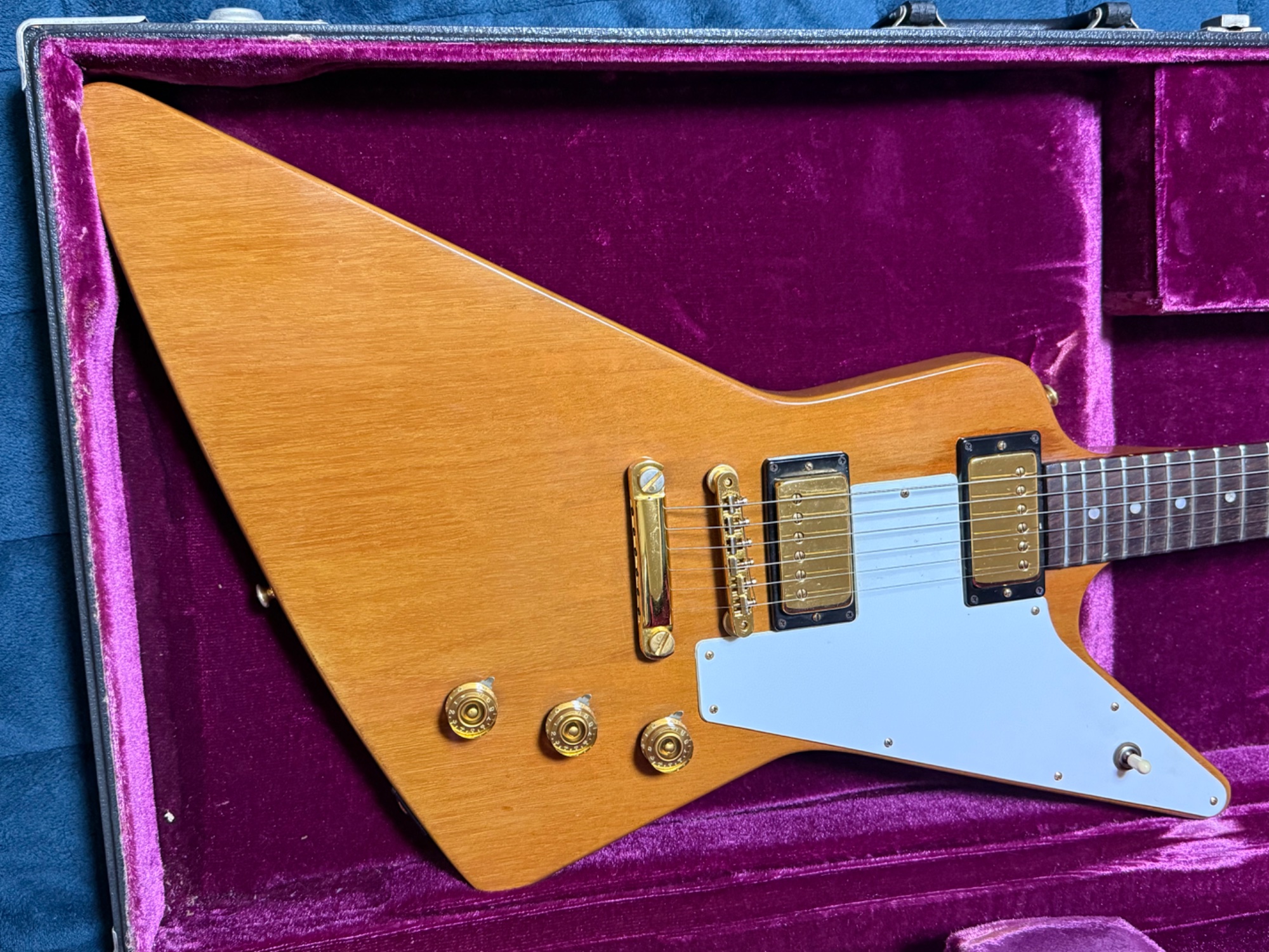 当時代理店だったヤマハが輸入したものです。フルオリ、純正ハードケース付き。個人的には世界で1番綺麗な1976年製ギブソンエクスプローラーだと思っています。金属パーツもピカピカです。