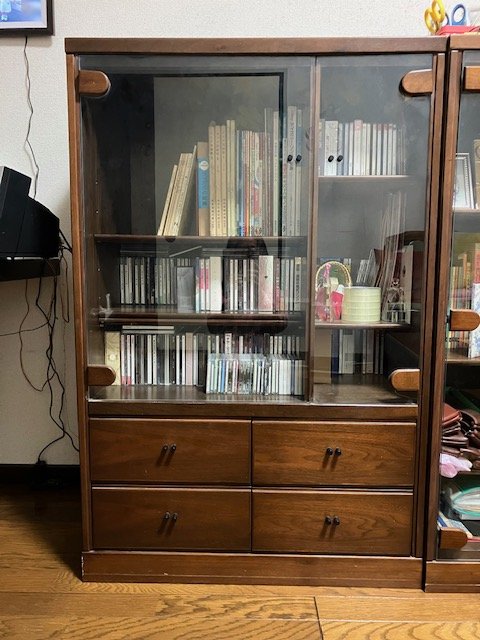 カリモクのリビングボード 上部はきれいですが、中は多少傷があります。