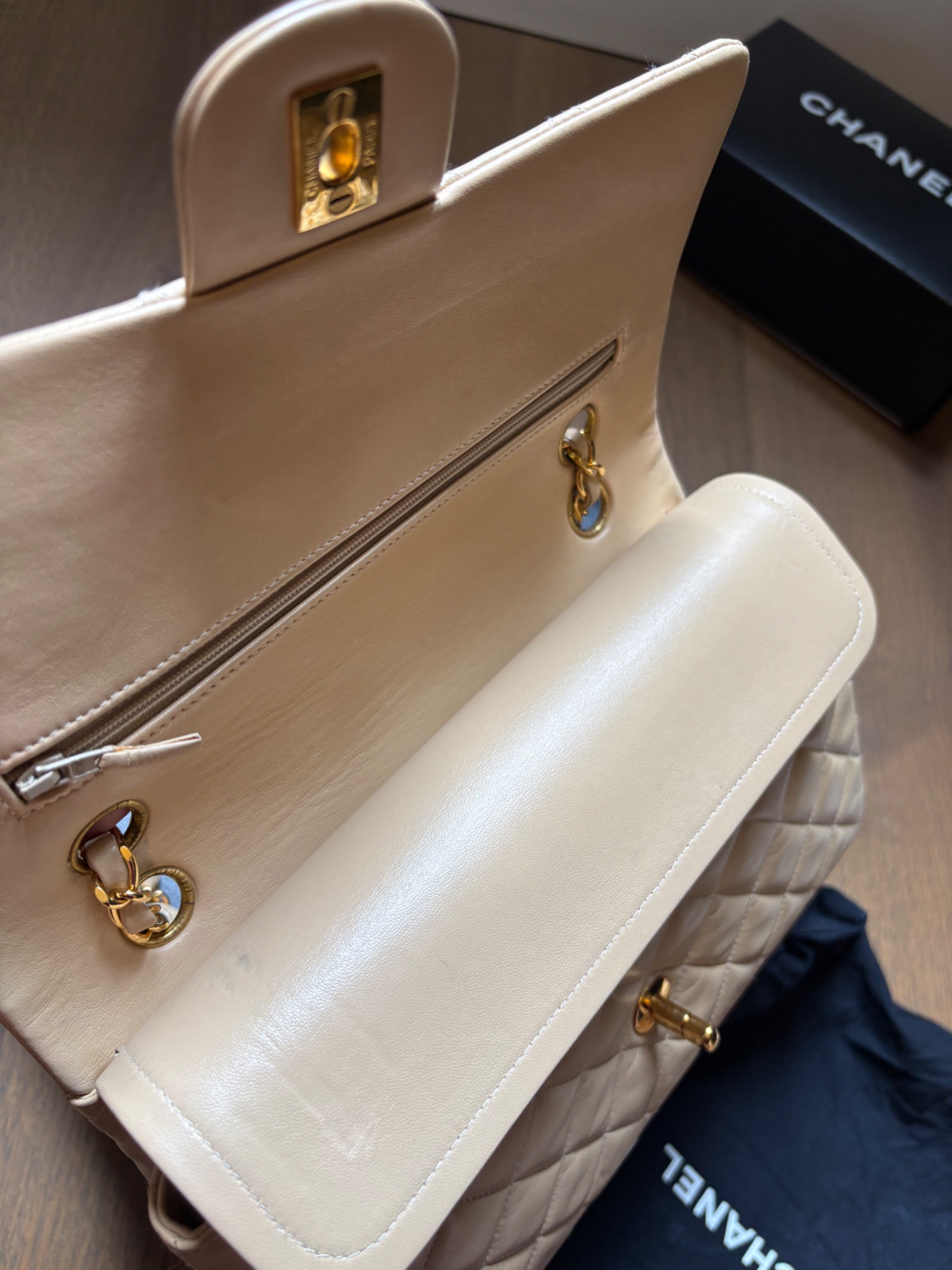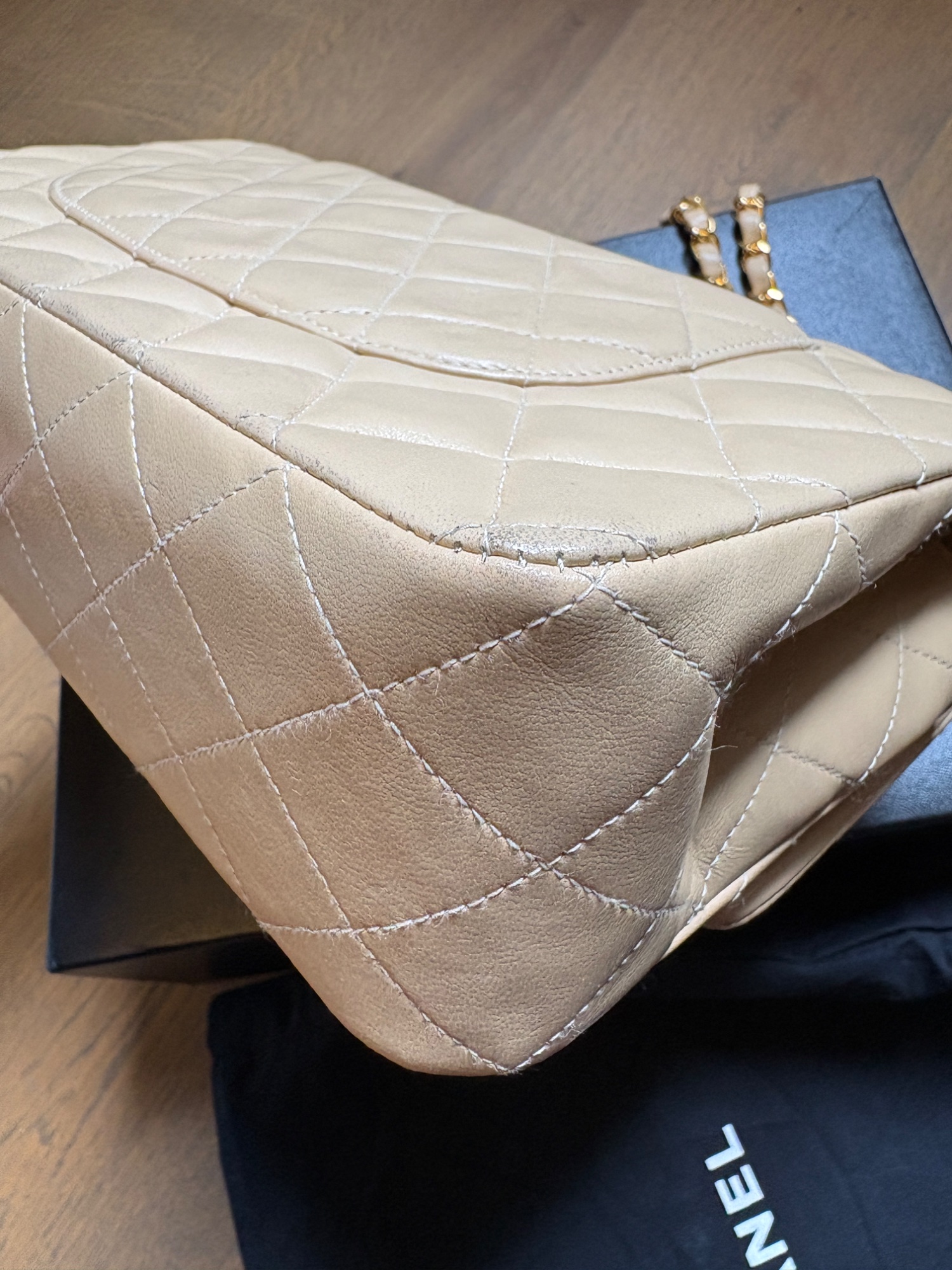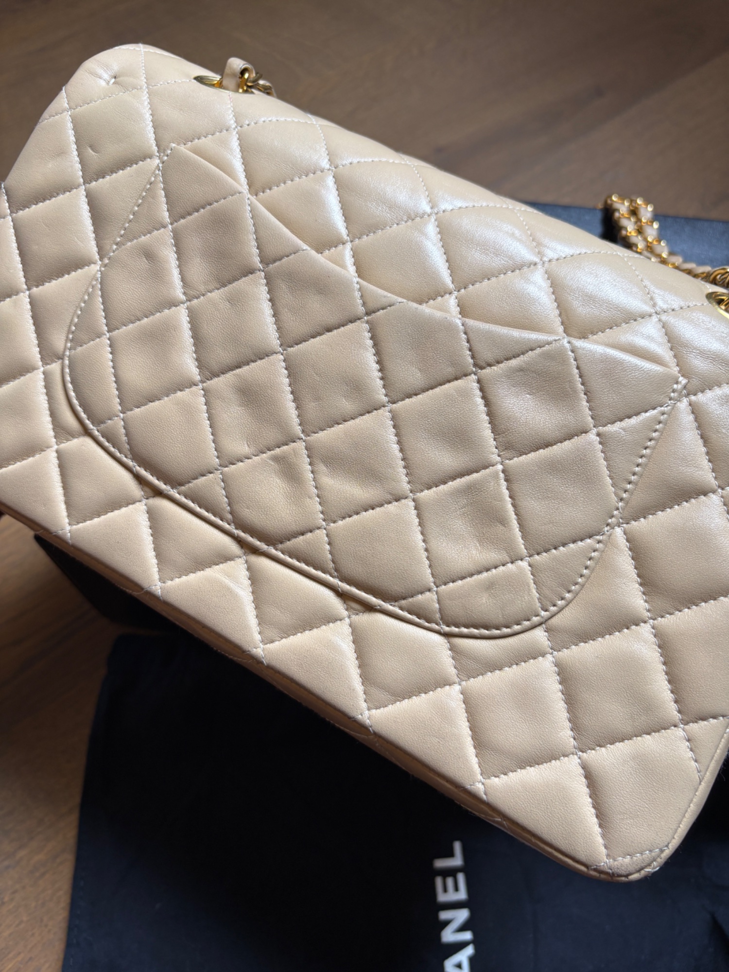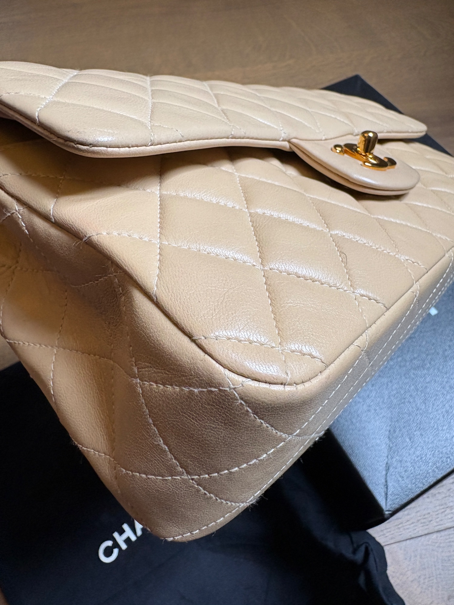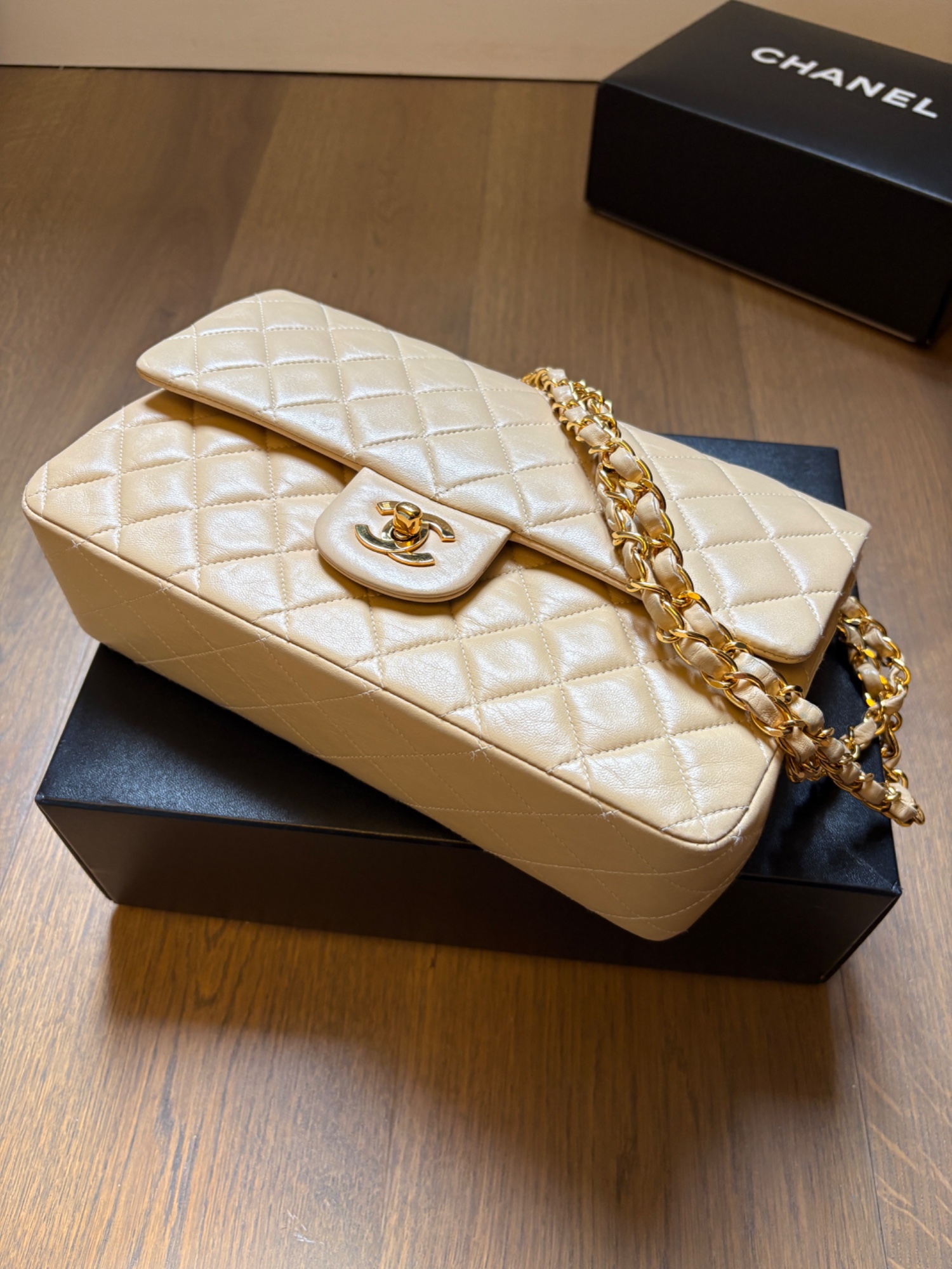 CHANELマトラッセ25 ベージュ